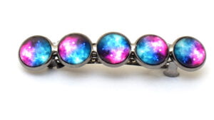 7 cm pikkune juukseklamber, mida kaunistavad 1,2 cm diameetriga klaaskivid
